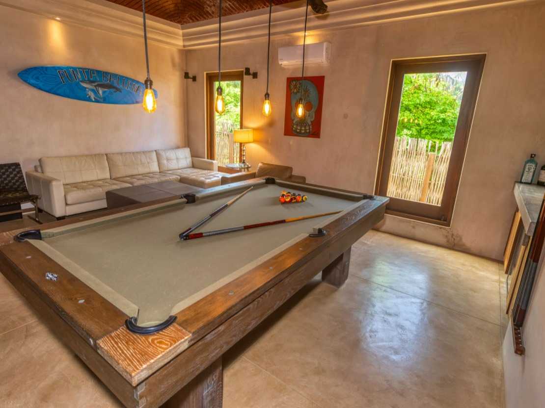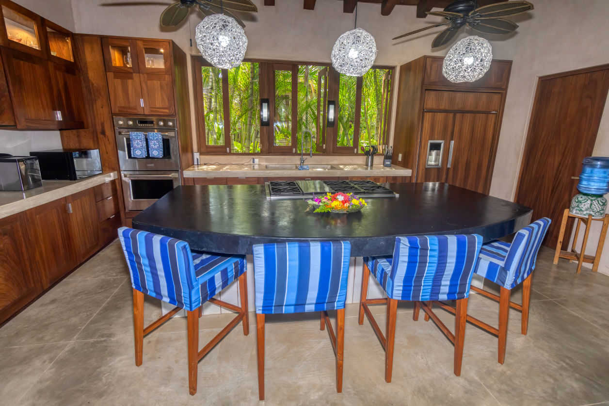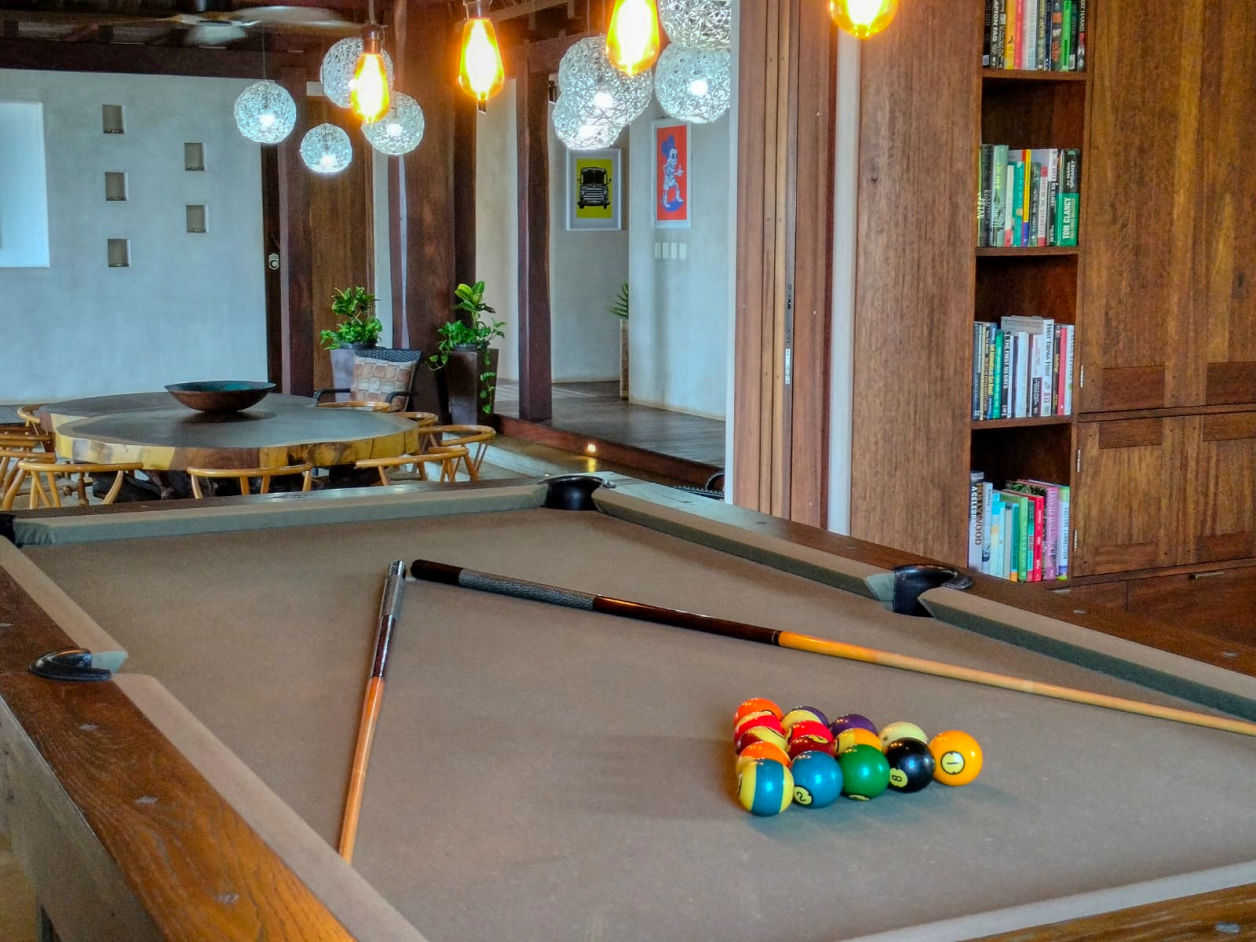 A game room/bar compliment one side of the villa, offering pool, a library and drinks. An open design chefs kitchen with an island stove, is ready for you to explore your tropical culinary skills using the fresh ingredients you picked up that day in town.